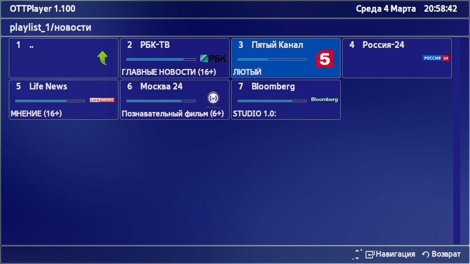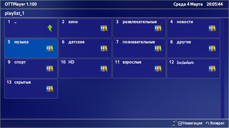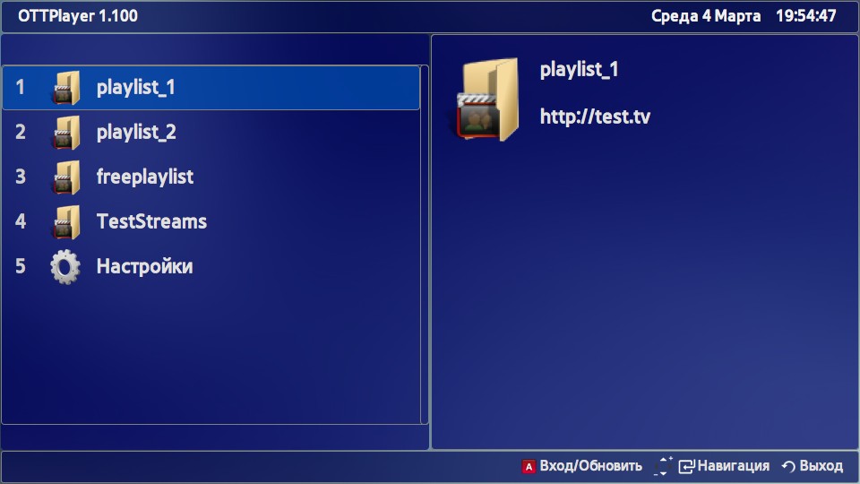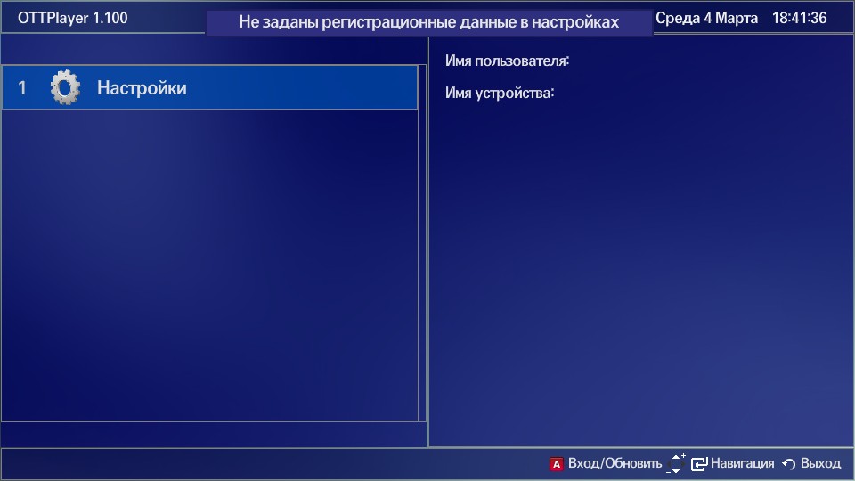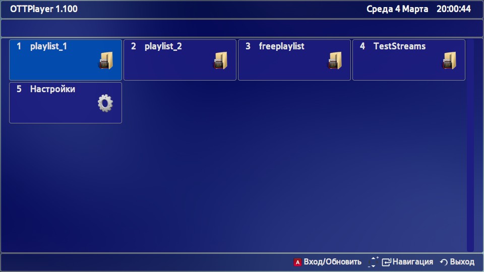 - Запустите приложение OTTPlayer.