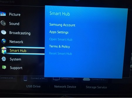 Открываем Меню ТВ Smart Hub Samsung Account Ввод